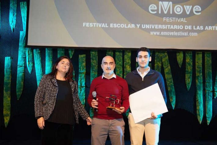 La secretaria general de ACADE entrega un premio en el festival escolar audiovisual eMove